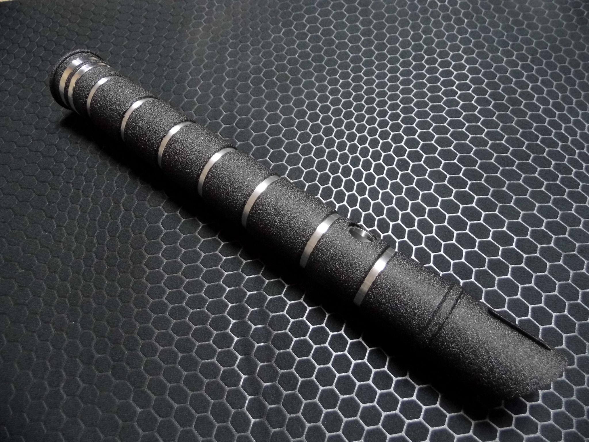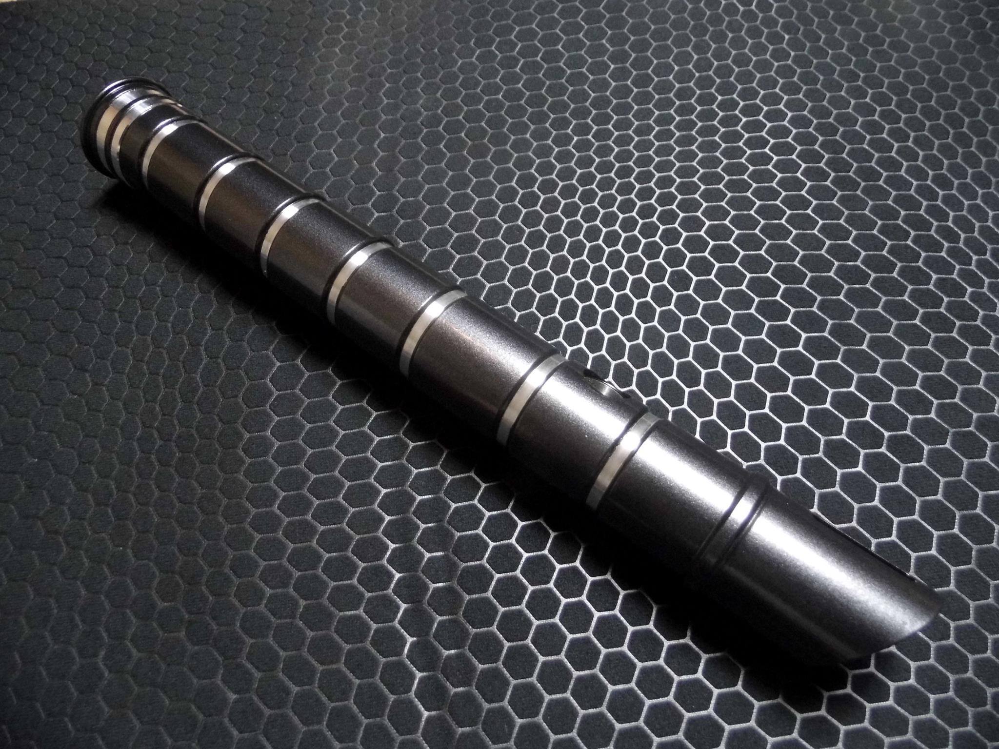 Emissary is back, and better than ever! We’ve taken all of your feedback, and updated Emissary in this new incarnation! It’s still just as sleek, but with improved grip, more detail, and that all-important emitter window! The Emissary v2 is CNC machined from 6061 aluminium, to ensure absolute quality! The Emissary v2 has been designed to accept a 1 inch blade and a 12mm switch of your choosing. The hilt dimensions: 32mm OD, 25.4mm ID, and 293mm in length (with pommel).